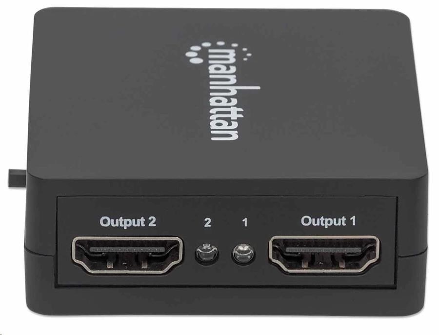 Jednoducho distribuujte jeden signál HDMI na viacero displejov.Manhattan 1080p 2-portový rozdeľovač HDMI posiela signály HDMI z jedného prehrávača Blu-ray, satelitného prijímača, digitálneho rekordéra, set-top boxu, hernej konzoly alebo iného zdroja HDMI na dva displeje HDMI. Flexibilné riešenie pre mnohé A/V aplikácieRozdeľovač HDMI Manhattan 1080p s 2 portami je ideálny na výstavy, do učební, na videokonferencie, prezentácie a maloobchodné aplikácie a je vybavený zabudovaným zosilňovačom na zvýšenie sily signálu. Je tiež dobrou voľbou na rozdelenie a distribúciu synchrónneho signálu na viacero displejov HDMI, keď je zdrojové zariadenie vzdialene uložené v zabezpečenej miestnosti alebo skrini. Používatelia môžu kaskádovať viacero jednotiek až do troch úrovní a vysielať obraz/zvuk HDMI na ďalšie displeje v široko distribuovaných aplikáciách.Kvalitná konštrukcia a jednoduchá inštaláciaPlná kompatibilita s HDMI, HDCP 1.0, 1.1 a 1.2, ako aj DVI 1.0 zaručuje, že 2-portový rozdeľovač HDMI Manhattan 1080p môže poskytovať dlhý servis a spoľahlivý výkon. Rýchlo pripojte káble HDMI (nie sú súčasťou balenia) a napájací kábel USB a toto cenovo dostupné riešenie HDMI je kompletné - nie sú potrebné žiadne zložité nastavenia ani konfigurácie softvéru alebo hardvéru.