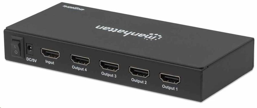 Manhattan HDMI Splitter, 4K 4-portový HDMI Splitter, 4K@60Hz, napájanie AC, čierny