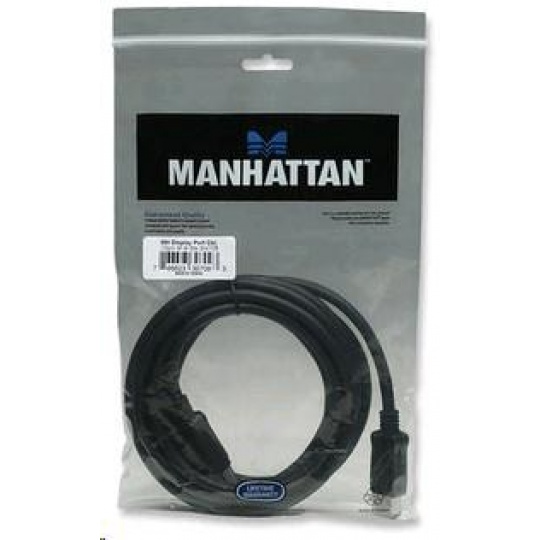 Výkon vo vysokom rozlíšení pre osobné počítače Káble MANHATTAN DisplayPort predstavujú jednokabelové riešenie, ktoré prenáša digitálne zvukové aj obrazové signály vo vysokom rozlíšení medzi stolnými počítačmi a notebookmi a výstupným zariadením. S 10.20-pinový konektor so šírkou pásma 8 Gb/s (1080 Mb/s), funkciou DeepColor a 24-bitovým 8-kanálovým nekomprimovaným zvukom je malý, kompaktný a ideálny na použitie s počítačmi vybavenými DisplayPortom, plochými displejmi, zariadeniami s tenkým profilom a mnohými zariadeniami spotrebnej elektroniky vrátane prehrávačov Blu-ray a herných konzol. Úplné fóliové a opletené tienenie, tvarované topánky s odľahčením od pnutia, ochranné PVC plášte a pozlátené prípojky pomáhajú káblom MANHATTAN DisplayPort poskytovať maximálnu vodivosť a čistý, jasný prenos signálu so zníženým rušením a skreslením EMI. -DisplayPort 20-pinový samec na DisplayPort 20-pinový samec so západkovým pripojením -Prenáša digitálne audio/vizuálne signály s vysokou šírkou pásma z PC na displej a iné zariadenia s podporou DisplayPort - až do rozlíšenia 1080p -Podporuje prechod signálu HDMI a DVI -Úplne tienený na zníženie EMI a iných zdrojov rušenia -Plug and Play pre aplikácie typu box-to-box -Tvarovaný PVC kryt -Životná záruka -Spĺňa alebo prevyšuje existujúci DisplayPort 1.1 normy - Podporuje 10.prenosová rýchlosť 8 Gb/s, rozlíšenie 2560 × 1600 (WQXGA) a HDCP -(2) 20-pinový samec DisplayPort so západkami -Tienenie: hliník a mylarové opletenie -28 AWG Obsah balenia -Kábel DisplayPort pre monitor..