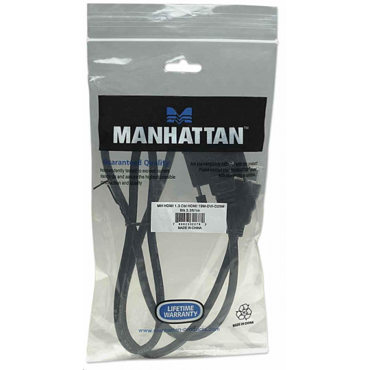 Kábel Manhattan HDMI na DVI-D poskytuje najjasnejšie, najpresnejšie farby a najostrejšie detaily pri pripojení televízora s vysokým rozlíšením, LCD alebo plazmového displeja, digitálneho satelitného prijímača, DVD prehrávača, digitálneho projektora alebo iných zobrazovacích zariadení vybavených rozhraním DVI alebo HDMI. Kábel Manhattan HDMI na DVI-D je skonštruovaný a vyrobený z kvalitných materiálov na zabezpečenie spoľahlivého prenosu v aplikáciách digitálneho videa. Úplné fóliové a opletené tienenie, tvarované topánky s odľahčením od pnutia, ochranné PVC plášte a pozlátené spoje pomáhajú zabezpečiť maximálnu vodivosť a čistý, jasný prenos signálu so zníženým rušením a skreslením EMI.