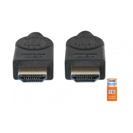 HDMI ako štandardné digitálne pripojenie poskytuje najkvalitnejší zvukový a obrazový signál prostredníctvom jediného kábla. Vysokorýchlostný kábel HDMI Manhattan Premium s rozhraním Ethernet s konštrukciou odolnou proti zamotaniu a pozlátenými kontaktmi je starostlivo skonštruovaný tak, aby spĺňal vyvíjajúce sa potreby trhu s ultra vysokým rozlíšením (UHD). Kábel ponúka najvyššie možné rozlíšenie 4K x 2K a obnovovaciu frekvenciu 60 Hz, šírku pásma 18 Gb/s na dokonalé sledovanie médií a spätný zvukový kanál na pohodlné a vynikajúce zvukové pripojenie. Tento vysokokvalitný kábel poskytuje UHD video a viackanálový digitálny zvuk so zvýšenými výkonnostnými charakteristikami a vyššou presnosťou. Medzi rozšírené funkcie patrí pripojenie na internet pomocou ethernetového kanála HDMI, ktorý poskytuje prístup na web pre zariadenie domácej zábavy pomocou jediného pripojenia HDMI.