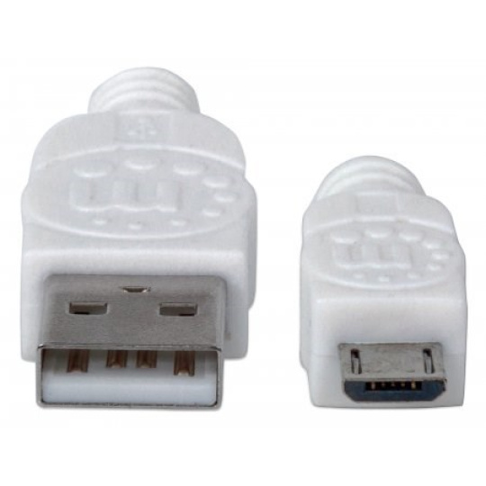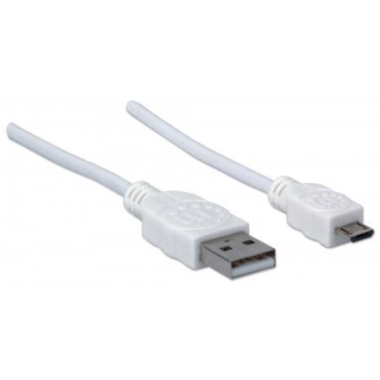 MANHATTAN Pripojovací kábel USB 2.0 A samec / Micro-B samec, 1 m, biely