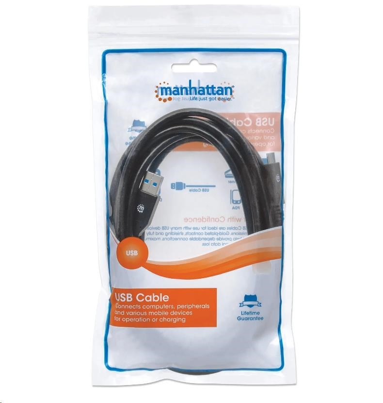 Káble Manhattan SuperSpeed USB typu C umožňujú jednoduché pripojenie periférnych zariadení a príslušenstva USB typu A k portom zariadení typu C. Tieto káble sú ideálne na použitie s akýmkoľvek zariadením USB typu A typu plug-and-play a podporujú prenos dát rýchlosťou až 5 Gb/s v systémoch Windows a Mac pre rýchle a spoľahlivé prenosy a prúd až do 3 A. Poniklované kontakty, tienenie a plne tvarované pätky s odľahčením ťahu zabezpečujú spoľahlivé pripojenie, maximálnu vodivosť a minimálnu stratu dát pri zníženom rušení EMI.