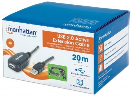 pomocou aktívneho kábla MANHATTAN Hi-Speed USB pripojíte port USB počítača k zariadeniu USB takmer kdekoľvek v miestnosti. Daisy-chain 2 káblové predĺženia poskytujú pohodlné, 40m (131-ft.) pripojenie. Aktívny vysokorýchlostný kábel USB MANHATTAN so zabudovaným opakovačom je plne kompatibilný s rozhraním USB 1.1 a špecifikácie Hi-Speed USB, ktoré pomáhajú zariadeniam pracovať s maximálnym výkonom. Možnosť zapojenia a používania, univerzálnosť systému Windows/Macintosh a žiadne požiadavky na externé napájanie alebo ovládače pomáhajú zabezpečiť väčšiu flexibilitu pri umiestňovaní počítačov a periférnych zariadení a pri usporiadaní kancelárie.