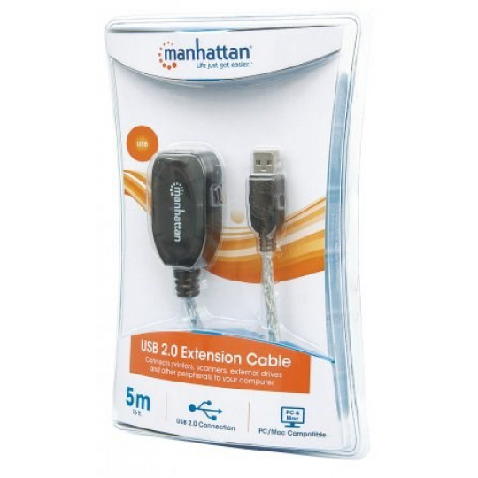 pomocou aktívneho kábla MANHATTAN Hi-Speed USB pripojíte port USB počítača k zariadeniu USB takmer kdekoľvek v miestnosti. Až tri káblové predĺženia s možnosťou reťazového zapojenia poskytujú pohodlný 15 m (50 ft.) pripojenie. Aktívny vysokorýchlostný kábel USB MANHATTAN so zabudovaným opakovačom je plne kompatibilný s rozhraním USB 1.1 a špecifikácie Hi-Speed USB, ktoré pomáhajú zariadeniam pracovať s maximálnym výkonom. Možnosť Plug and Play, univerzálnosť systému Windows7/8/Macintosh a žiadne požiadavky na externé napájanie alebo ovládače pomáhajú zabezpečiť väčšiu flexibilitu pri umiestňovaní počítačov a periférnych zariadení a pri usporiadaní kancelárie.