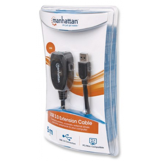 pomocou aktívneho predlžovacieho kábla Manhattan SuperSpeed USB pripojíte port USB počítača k zariadeniu USB takmer kdekoľvek v miestnosti. Predĺžte existujúce pripojenie o 5 metrov bez straty signálu. Aktívny predlžovací kábel Manhattan SuperSpeed USB so zabudovaným opakovačom je plne kompatibilný s rozhraním USB 3.0 a skoršie špecifikácie, ktoré pomáhajú zariadeniam pracovať na maximálnej úrovni výkonu. Možnosť Plug-and-play, Windows/7/8.všestrannosť počítačov 1/10/Macintosh a žiadne požiadavky na externé napájanie alebo ovládače pomáhajú zabezpečiť väčšiu flexibilitu pri umiestňovaní počítačov a periférnych zariadení a pri usporiadaní kancelárie.