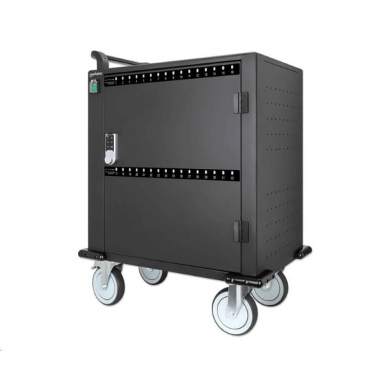 MANHATTAN nabíjací vozík - 32 portov, 576 W, prepäťová ochrana, tiché vetranie, kovový kryt, čierna farba