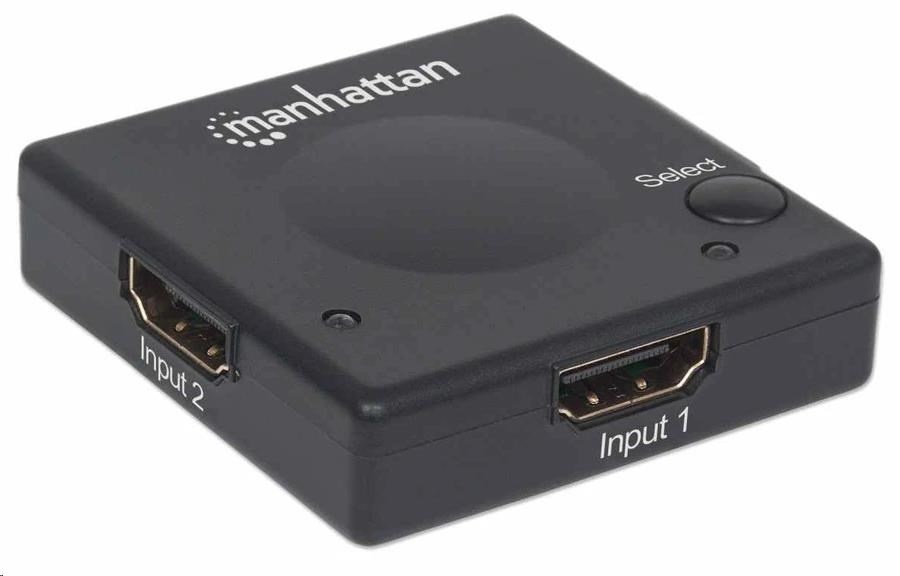 Jednoducho pripojte viacero zdrojov HDMI k jednému displeju.Manhattan 1080p 2-portový prepínač HDMI pripája dva zdroje videa HDMI - vrátane herných konzol, prehrávačov Blu-ray, satelitných prijímačov, digitálnych rekordérov, set-top boxov a ďalších zariadení - na jeden displej s vysokým rozlíšením.Flexibilné riešenie pre mnohé HD aplikácieS rastúcim počtom dostupných multimediálnych zariadení s vysokým rozlíšením rozširuje 2-portový HDMI prepínač Manhattan 1080p možnosti pripojenia pre váš HDTV, plochý monitor alebo videoprojektor. Prepínač automaticky rozpozná a vyberie aktívny zdroj HDMI a nasmeruje signál na displej. Tlačidlo manuálnej voľby navyše umožňuje používateľom vybrať zdroje, keď je súčasne zapnutých viac ako jeden zdroj HD videa.Najlepšia možná kvalita obrazuPlná zhoda s HDMI a HDCP 1.0 a 1.1 zaručuje, že 2-portový HDMI prepínač Manhattan 1080p poskytuje vysokokvalitný výkon a spoľahlivosť. Poskytuje obraz v plnom rozlíšení 1080p a podporuje 3D video, ako aj zvuk LPCM, DTS a Dolby TrueHD.
