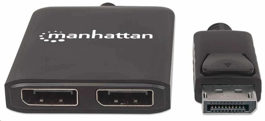 Manhattan Hub, MST hub, DisplayPort na duálny DisplayPort (M/F), 4K@30Hz, čierny
