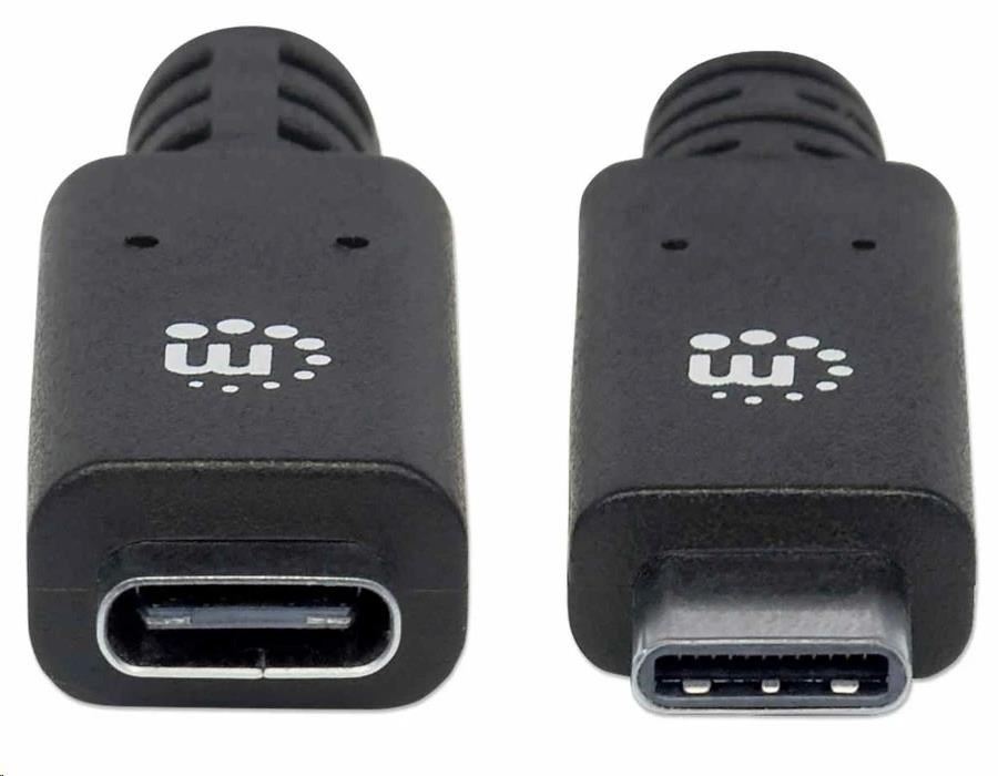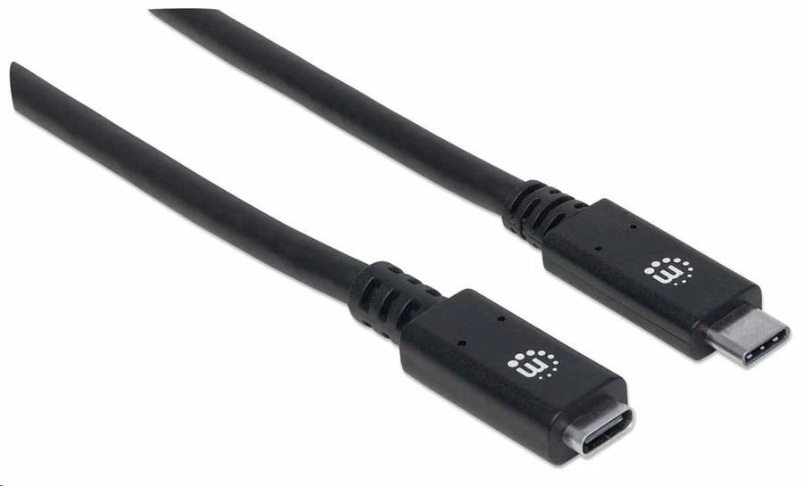 Kábel Manhattan USB-C, USB 3.1 Gen 2, USB-C samec na USB-C samica, 10 Gb/s, 5 A, 50 cm, čierna
