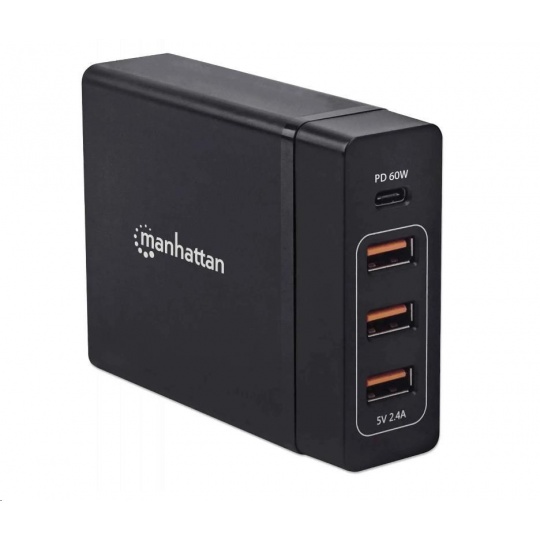 Nabíjacia stanica MANHATTAN USB Power Delivery - 72 W, čierna