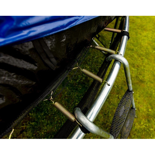 Vnútornú ochrannú sieť nájdete priamo v balení, nemusíte si ju dokupovať zvlášť. Vnútorná ochranná sieť je bezpečnejšia než vonkajšia sieť - bráni prístupu skákajúceho do časti s pružinami. Vstupný priestor je zabezpečený tromi sponami a bráni vypadnutiu. Tyče sú obalené ochranným návlekom z mäkčenej peny. Nohy trampolíny sú samostatné a zvyšujú stabilitu celej trampolíny. Spojenie tyčí nôh trampolíny a siete je poistné špeciálnymi sponami.