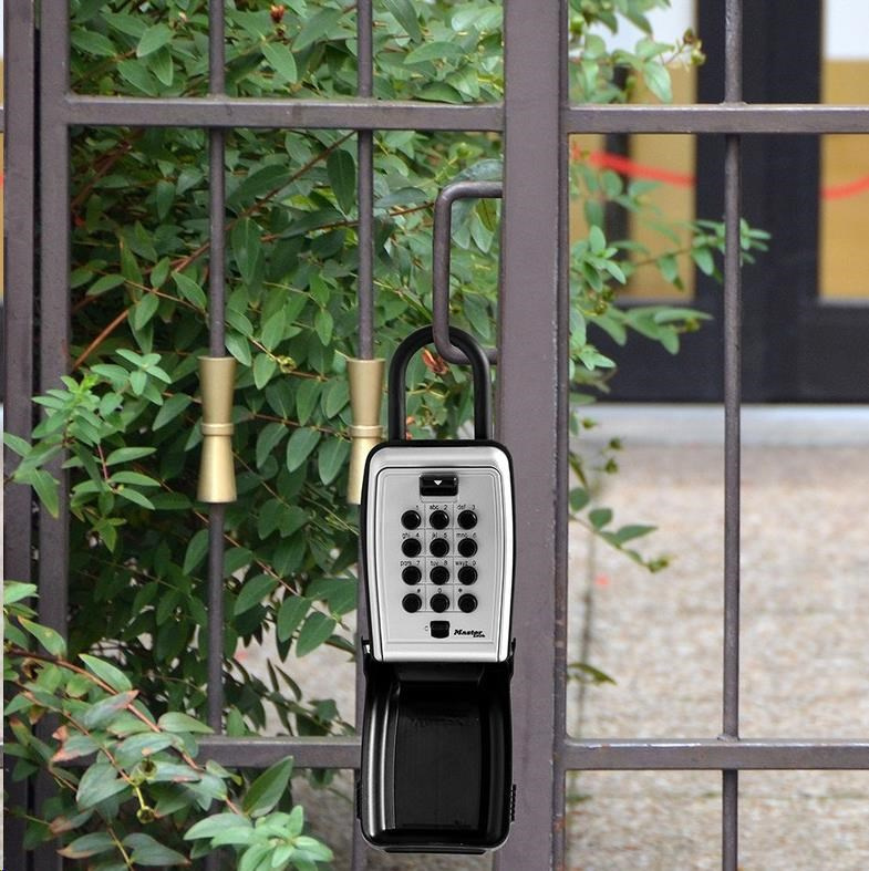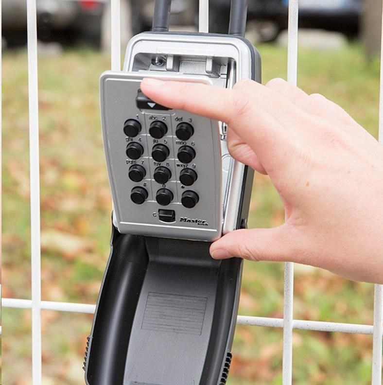 Stredná bezpečnostná prenášateľná skrinka s okom na uloženie kľúčov s kovovým telom šírky 79 mm pre jej dlhú životnosť. Prestante skrývať svoje kľúče pod rohožkou alebo pod kvetináčom. Táto skrinka s veľkými tlačidlami je veľmi ľahko použiteľná aj za zhoršených svetelných podmienok, s rukavicami, staršími ľuďmi alebo deti. Nastavte si vlastnú kombináciu až 12 písmen, číslic alebo obojím pre bezkľúčové pohodlie a zvýšenie bezpečnosti. Pohodlný mechanizmus uzamknutia tlačítka vo známej podobe alfanumerickej klávesnice. Ochranný poveternostný kryt zabraňuje zamrznutiu a zaseknutiu. Tvarované telo a vinylové pásy bránia poškriabaniu.