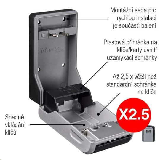 Vnútorná kapacita schránky je 2,5-krát väčšia ako majú štandardné schránky na kľúče.