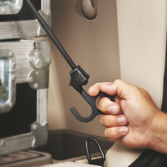 Špeciálna upínacia guma s dĺžkou 800 mm a priemerom 8 mm zakončená háčikom a okom. Maximálna nosnosť 65 kg. Ploché oceľové háčiky vybavené okom pre ľahšiu manipuláciu a vyššiu pevnosť v ťahu. Plastom kryté háčiky zabraňujúce poškodeniu nákladu.
