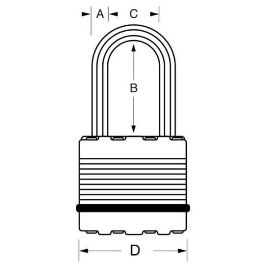 - Visací zámok so šírkou 45 mm s telom zo vrstvenej ocele spevnené titanom pre vyššiu odolnosť a spoľahlivosť.