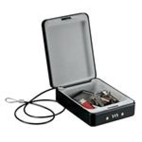 Uzamykateľný cestovný box na cennosti P005CEURBLKHRO je vhodný na uloženie kľúčov, hotovosti, dokladov, šperkov alebo drobnej elektroniky. Box má pevnú oceľovú konštrukciu.