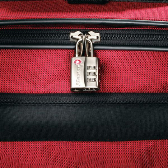 Visací kombinovací zámok s šírkou 30 mm pre batožinu schválený agentúrou TSA. Kovové telo zámku je odolné voči poškodeniu, trmen z ocele s priemerom 3 mm je odolný voči prestrihnutiu. Zámok má nastaviteľnú 3-cifernú kombináciu.