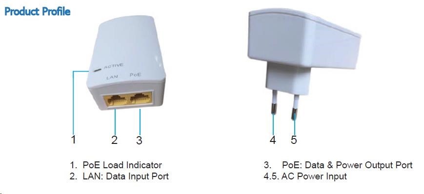 axLink PI15S je vysokokvalitný gigabitový POE injektor s jedným výstupným portom POE na napájanie 802.3af a maximálnou spotrebou energie do 15,4 W. Injektor PoE sa pripája priamo na vstup. Napájanie je vedené po vodičoch 4,5 (+) a 7,8 (-). Napájací injektor je vhodný najmä na napájanie IP kamier, telefónov VoIP atď...
