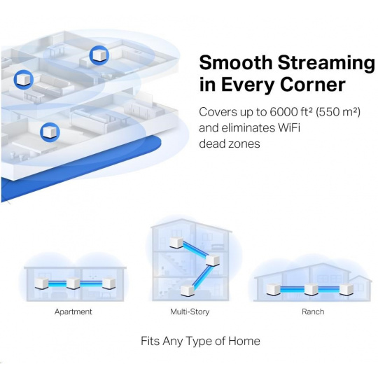 Pokrytie celej domácnosti - pokryte vysokorýchlostným WiFi až do rozlohy 550 m2, čím eliminujete mŕtve zóny WiFi vo vašej domácnosti.