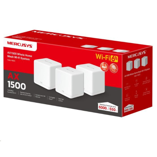 MERCUSYS Halo H60X(3-pack) WiFi6 Mesh (AX1500,2,4GHz/5GHz,3xGbELAN/WAN(1x XR Unit), 2xGbELAN/WAN (2x XS Unit)