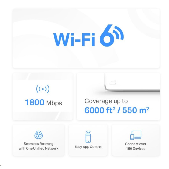 - Pokrytie celej domácnosti – pokrytie priestoru až 550 m2 (6 000 štvorcových stôp) vysokorýchlostnou sieťou Wi-Fi, ktorá eliminuje mŕtve zóny Wi-Fi pokrytia vo vašej domácnosti.