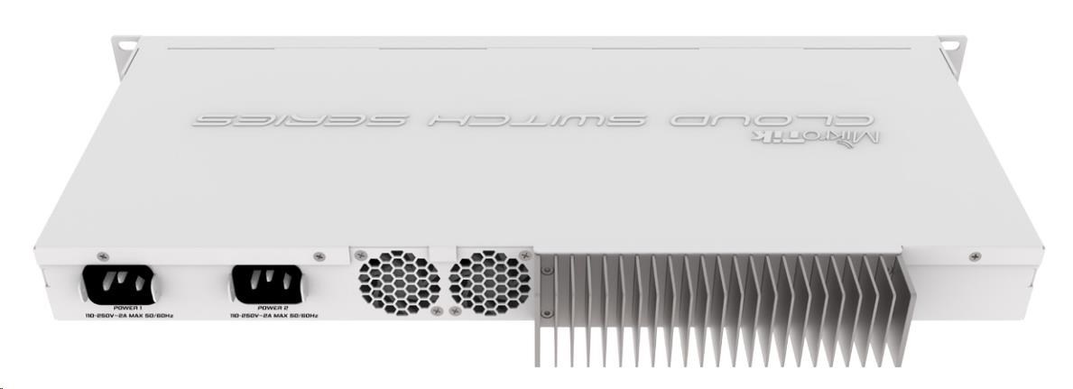 Okrem 2 plne redundantných napájacích zdrojov má switch aj veľký pasívny chladiaci systém, ktorému v prípade teplého prostredia pomáha dvojica ventilátorov.