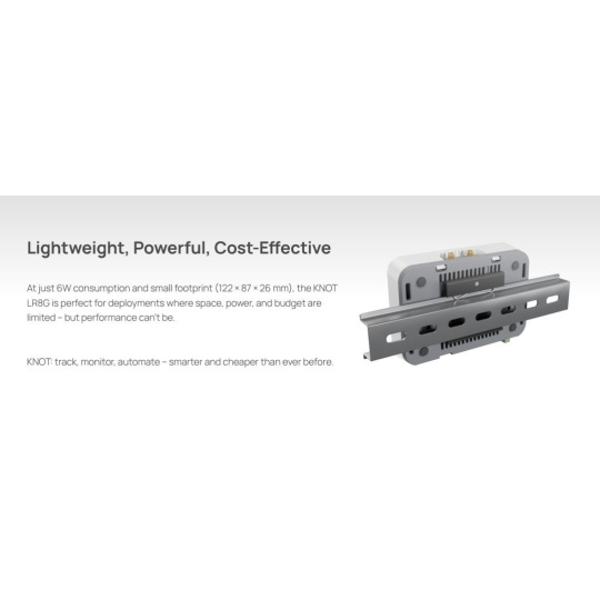 Brána IoT průmyslové třídy pro inteligentní sledování majetku, vzdálené monitorování a efektivní automatizaci - nyní s vylepšeným příjmem LoRa®, souběžným GPS + LTE CAT-M a nižší cenou. KNOT LR8G je kompaktní brána pro sítě založené na technologii LoRa®, která je navržena tak, aby poskytovala cenově dostupné a spolehlivé připojení i v těch nejodlehlejších nebo na infrastrukturu nenáročných prostředích. Podporuje LTE CAT-M1 a NB2, Bluetooth 5.2, 2,4 GHz Wi-Fi, GPS a Ethernet s PoE, což z ní činí flexibilní ústřední prvek pro jakékoli nasazení IoT. Mobilní připojení k internetu CAT-M1 a NB2 umožňuje ušetřit spoustu peněz a vzdáleně monitorovat a spravovat zařízení, aniž byste potřebovali drahé datové tarify nebo plné pokrytí LTE. Ať už sledujete vysoce cenný majetek v nemocnici, spravujete prodejní automat v nákupním centru nebo monitorujete senzory na zemědělském poli - KNOT LR8G vše propojuje a udržuje spojení. Díky spotřebě pouhých 6 W a malým rozměrům (122 × 87 × 26 mm) je zařízení KNOT LR8G ideální pro nasazení tam, kde je omezený prostor, energie i rozpočet, ale ne výkon. Funkce a vlastnosti: Souběžné připojení GPS a LTE CAT-M Sledujte pohybující se prostředky pomocí přesného systému GPS a zároveň udržujte živé připojení LTE CAT-M1. Ideální pro mobilní jednotky, jako jsou servisní vozidla, kontejnery nebo roamingové vybavení v terénu. Všestranné napájení Vyberte si z PoE-in, DC jack nebo MicroUSB - včetně PoE-out na Ether2 pro napájení dalších zařízení. Konektory SMA(F) pro všechna hlavní rozhraní Snadné nastavení antény pro LTE, GPS a LoRa®. Vylepšený příjem 868 MHz LoRa® Zvýšená citlivost pro silnější signál a delší dosah, a to i v prostředí se silným rušením. Nižší cena, stejná spolehlivost Cenově výhodné pro rozsáhlá nasazení bez obětování výkonu. Poháněn systémem RouterOS v7 Pro pokročilé ovládání, vlastní skriptování a pokročilé funkce směrování. Příklady praktického nasazení: Sledování majetku nemocnice Připojte majáky Bluetooth ke kritickému zdravotnickému vybavení. Nainstalujte KNOT LR8G do každého skladovacího prostoru. Při pohybu zařízení KNOT detekuje blízké štítky, sleduje polohu pomocí GPS a odesílá aktualizace přes LTE CAT-M - udržuje aktuální stav inventáře a snižuje počet manuálních kontrol. Zemědělství a odlehlé lokality Nasaďte KNOT ke sběru dat z půdních nebo meteorologických senzorů na venkovských polích. Díky podpoře širokého pásma, příjmu LoRa® a kompatibilitě s GPS je ideální pro sběr dat na velké vzdálenosti a s nízkou spotřebou energie. Monitorování chladicího řetězce Používejte kabelové senzory Modbus ke sledování teploty a vlhkosti uvnitř chladicích kontejnerů. KNOT převádí Modbus na TCP a bezpečně předává data prostřednictvím MQTT nebo HTTPS s využitím nízkopásmového LTE nebo NB-IoT. Průmyslová automatizace Přemostění starších kabelových senzorů a akčních členů do cloudu. Díky podpoře lišty DIN a monitorování GPIO se KNOT snadno integruje do průmyslových rozváděčů nebo výrobních prostředí. Upozornění: IoT brána není plnohodnotným LTE routerem. SIM karta není určená pro vytáčení připojení, ale pro komunikaci v síti IoT. IoT brána nedisponuje LTE modemem. Jak by to všechno fungovalo v reálném životě? Představme si nemocnici. Spousta drahého majetku se pohybuje v obrovských budovách. Nástroje, vybavení, léky, na co si vzpomenete. Všechno se neustále přesouvá. neustále přesouvá. Nemocnice obvykle musí vynakládat spoustu prostředků na kontrolu inventáře. Pojďme to napravit. Umístěte na všechny důležité položky lokalizační Bluetooth čipy. Přidejte zařízení KNOT do každého skladovací místnosti. Nyní vedení nemocnice vždy ví, zda se vybavení vrátilo na své místo. Technické specifikace: Product code: RB924iR-2nD-BT5&BG770A&R11e-LR8G CPU: QCA9531 650 MHz CPU architecture: MIPSBE Size of RAM: 64 MB RAM type: DDR2 Storage: 128 MB, NAND Number of 100M Ethernet ports: 2 USB port: 1x microUSB type AB Wireless: 2.4 GHz 802.11b/g/n Wireless interface model: QCA9531 Antenna gain: 1.5 dBi Antenna beam width: 360° GNSS interface model: MT3337V GNSS standard: GPS Antenna connector: SMA female LoRa band: 868MHz Bluetooth version: 5.2 IoT modem: BG770A Cat NB type: Cat NB2 Cat NB band: B1/B2/B3/B4/B5/B8/B12/B13/B17/B18/B19/B20/B25/B28/B66 Cat M type:: Cat M1 Cat M band :B1/B2/B3/B4/B5/B8/B12/B13/B18/B19/B20/B25/B26/B27/B28/B66 Operating system: RouterOS v7, License level 4 Operating temparature: -40°C to +70°C Napájení: Number of DC inputs: 3 (PoE-In, MicroUSB, DC jack) PoE-In input voltage: 18-57 V MicroUSB input voltage: 5-5 V DC jack input voltage: 12-57 V Power adapter nominal voltage: 24 V Power adapter nominal current: 1.2 A PoE-in: 802.3af/at PoE-out: 802.3af (Ether2) Smart PoE: Injector Max out per port output (input < 30 V): 650 mA Max out per port output (input > 30 V): 450 mA Max power consumption (without attachments): 6 W Max power consumption: 23 W Internet věcí (anglicky Internet of Things, zkratka IoT) je termínem pro moderní přístroje ovladatelné i na dálku pomocí internetu. Snadno je tak obsloužíte pomocí svého chytrého telefonu nebo je jednoduše připojíte k centrální jednotce. Umožní tak snadno zautomatizovat věci, o které byste se jinak museli postarat sami. Jedná se o technologický koncept umožňující realizaci takzvaného "inteligentního domu" (automatické zhasínání světel, ovládání vytápění apod.). Umožňuje řídit klimatizaci, vyhřívání vašeho bazénu, ohřev vody, pečovat o vaše akvárium, obsluhovat nastavení alarmu či mechanických zámků. Pokud si nejste jistí, zda jste v ranním shonu vypnuli žehličku, můžet