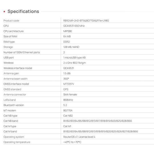 MikroTik RB924iR-2nD-BT5&BG770A&R11e-LR8G IoT Gateway KNOT LR8G kit