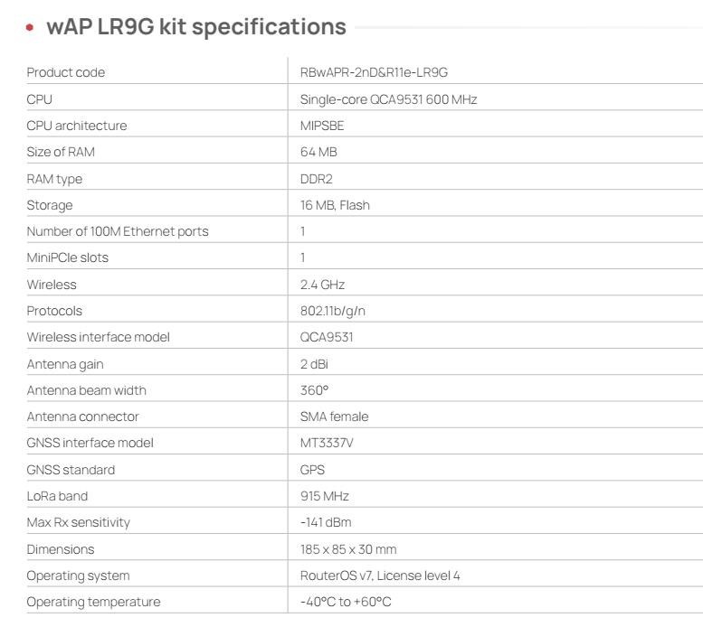 MikroTik RBwAPR-2nD&R11e-LR9G 2,4GHz LoRa gateway wAP LR9G kit