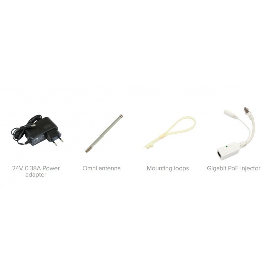 Balenie obsahuje: routerBOARD RBGrooveGA-52HPacn, injektor PoE, napájací zdroj, montážnu sadu, všesmerovú anténu 6 dBi