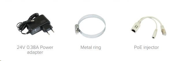Balenie obsahuje SXTsq Lite5, injektor PoE, napájací zdroj, montážnu sadu na stožiar