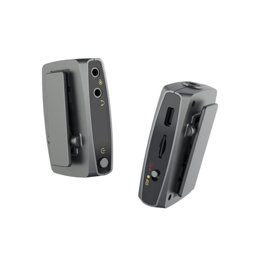 Bezdrôtové mikrofonné vysielače v tomto sete majú zabudované všesmerové mikrofóny. V prípade potreby však môžu slúžiť tiež ako záznamové zariadenie. Stačí vložiť microSD kartu a jednoduchým prepnutím tlačidla začať počas pár sekúnd nahrávať. Tým odpadá potreba mať so sebou ďalšie zariadenie na audio záznam a vystačíte si len s vysielačom/rekordérom, ktorý sa bez problémov vojde do vrecka. Úplne ideálne riešenie pri cestovaní naľahko. Záznam na microSD je v nekomprimovanom formáte WAV s prenášenou rýchlosťou 177 kbps, takže budete mať k dispozícii veľmi kvalitný záznam na následnú postprodukciu.