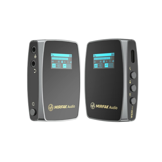 Mirfak Audio WE10 Pro je kompaktný bezdrôtový mikrofónny systém, ktorý je ideálny pre tvorbu obsahu, natáčanie, jevištné prezentácie, vlogovanie, YouTube videá, živé vysielanie atď. Vďaka jeho malým rozmerom ho zbalíte do tašky alebo vrecka a je pripravený na nahrávanie za chvíľu. Prehľadná obrazovka prijímača znázorňuje všetky zvolené nastavenia, silu signálu, úroveň batérie a vizualizuje úroveň vstupu z diaľkových snímačov.