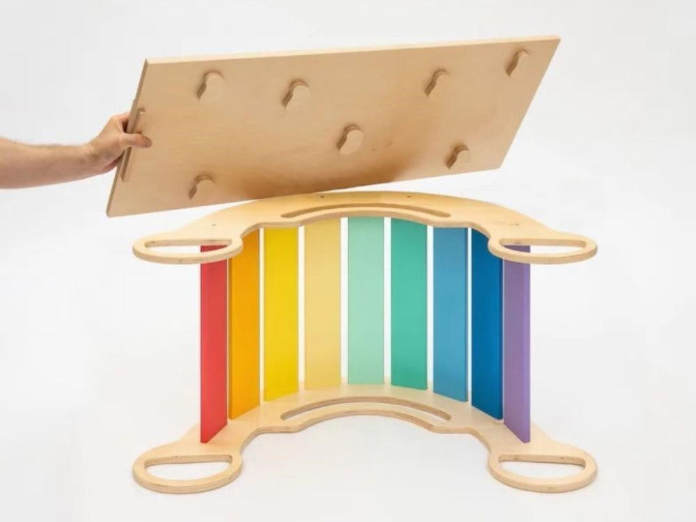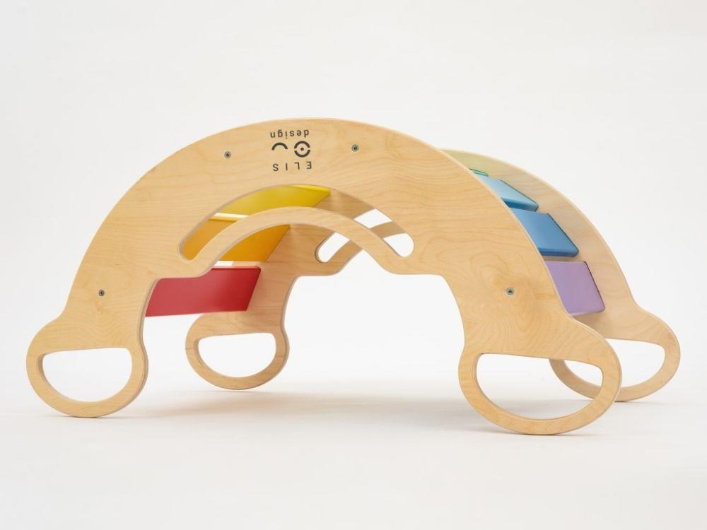 # Drevené detské Montessori hojdačka smile 6in1 vás prekvapí svojim dizajnom aj multifunkčnosťou. Hojdačka bude každý deň svojím širokým úsmevom lákať deti k príjemnému hojdaniu aj k zábavnej hre. Jej využitie je všestranné, môže byť hojdačkou, šmýkačkou, lezeckou, skrýšou aj sedačkou, pri doplnení obojstranným doskou aj detským nábytkom. Obojstranná doska nie je súčasťou hojdačky. Vďaka sviežim fresh farbám rozžiari každý detský interiér. Vyrobená je z tých najkvalitnejších materiálov, ručne dôkladne opracovaná a lakovaná farbami s atestom. Montessori hojdačka smile je širšia ako naše Montessori hojdačky 5in1, preto k tejto hojdačke ponúkame aj špeciálnu obojstrannú dosku, ktorá je doplnkom ku hojdačkám smile. Vďaka doske ľahko premeníte hojdačku smile na detský stolík. Obojstranná doska nie je súčasťou hojdačky, na využitie hojdačky ako nábytku je nutné dosku samostatne dokúpiť.