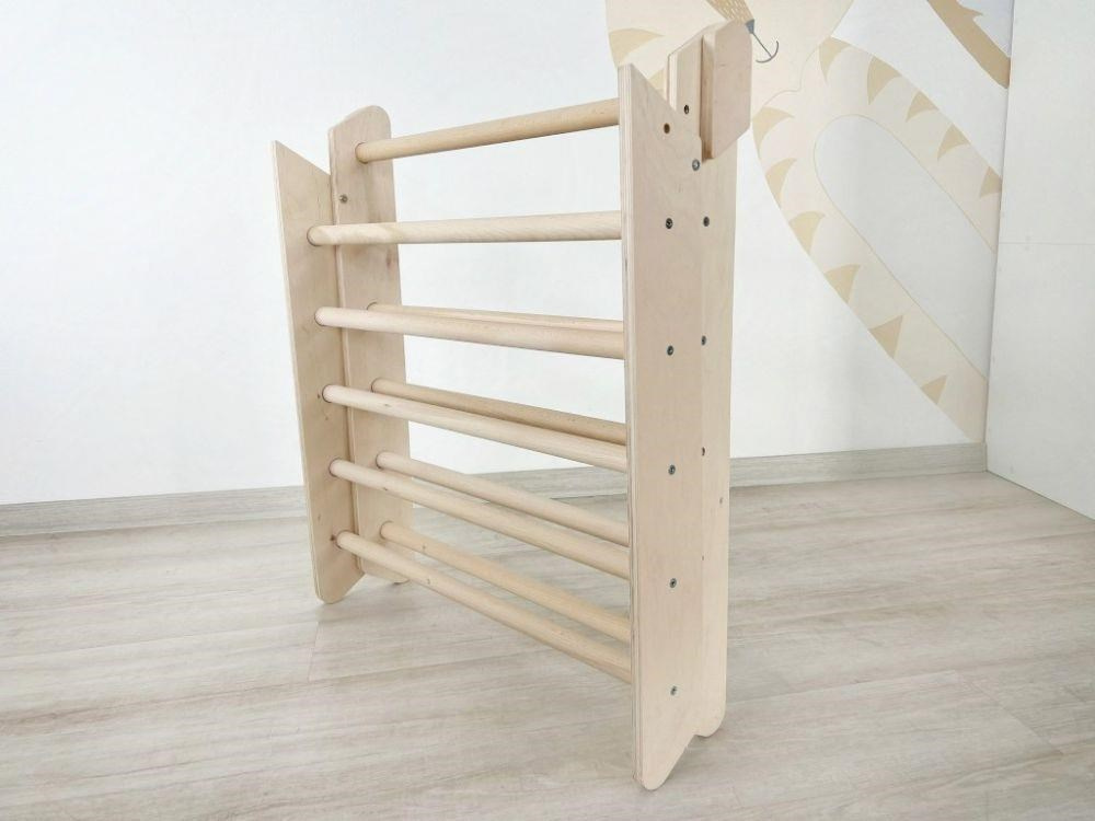 Montessori Piklerov trojuholník ponúka deťom možnosť pohybovej realizácie podľa vlastných schopností a odvahy. Deti sa úplne prirodzene naučia rozoznať a rešpektovať svoje možnosti a mieru odváhy, zároveň ich obratnosť bude stále rásť. Schodík má bezpečnú výšku, príslušenstvo je akurát široké pre pohodlné držanie a navyše je vybavené systémom proti otáčaniu príčníkov.