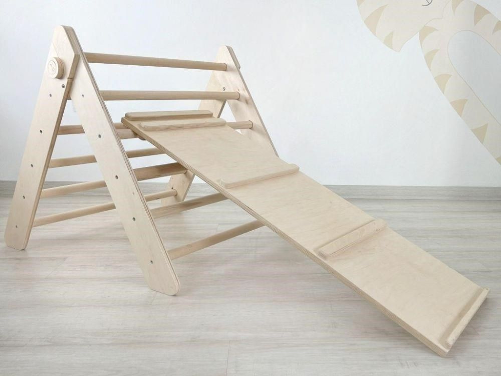 Pri doplnení Piklerovho trojuholníka originálnymi doplnkami získa táto detská lezecká dráha nový, zábavnejší rozmer. K schodíku môžete pripojiť dvojstrannú dosku a premeniť tak lezeckú dráhu na malé detské ihrisko.