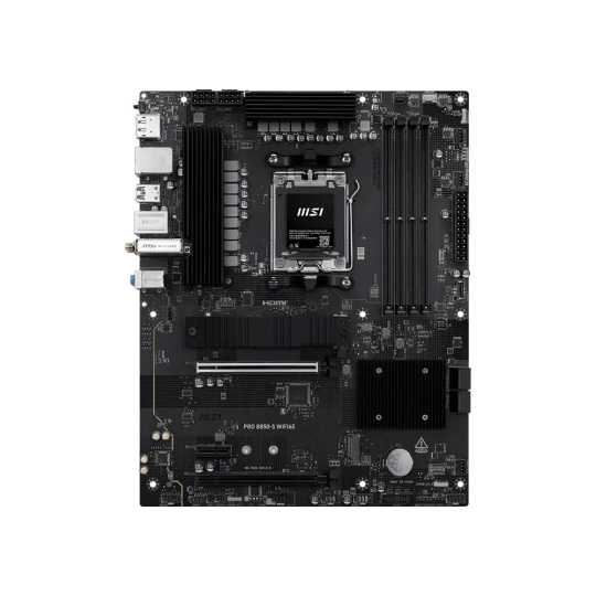 Základní deska PRO B850-S WIFI6E nabízí jednoduchý design s harmonickým barevným schématem, které se dokonale hodí k černým PC sestavám. Je vybavena mnoha exkluzivními funkcemi MSI, Wi-Fi 6E s anténou EZ Antenna, 2.5G LAN a PCIe 5.0 M.2 s chladičem M.2 Shield Frozr. Deska je plně připravena pro procesory řady AMD Ryzen 9000.