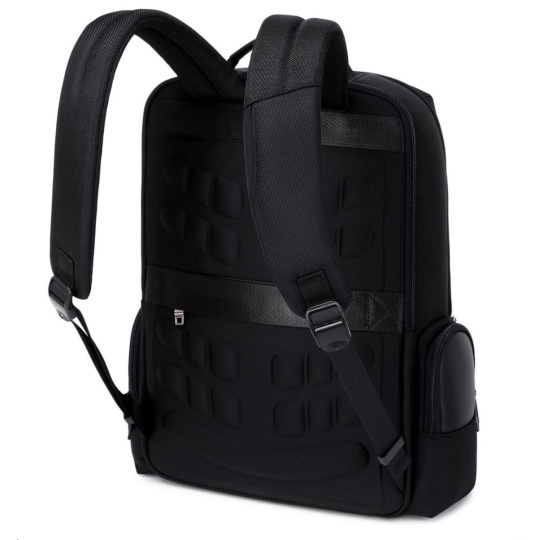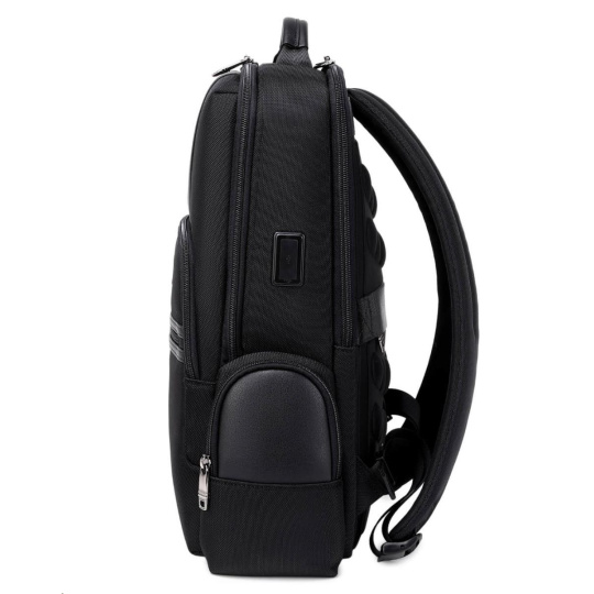 MYBALO ASTON Perfektní volba pro minimalisty s dobrým vkusem  6 ikon: - Nejtenčí batoh - Elegantní - Kapsa na notebook do 15,6" - Kapsa na tablet do 9" - Otevírání o 180 stupňů - USB a USB-C port - Drží tvar - Voděodolný - Skryté kapsy  Elegantní a minimalistický Jedná se o velmi elegantní a minimalistický batoh. S tímto parťákem neuděláte chybu při běžném nošení do města, ani na důležité schůzce.  Tenký batoh MYBALO Aston je batoh s vůbec nejmenší hloubkou z naší nabídky. Díky tomu působí elegantně a minimalisticky, ale i přesto se do něj vejdou všechny vaše nezbytnosti.  Kvalitní voděodolný materiál, dlouhá životnost Kvalitní umělá kůže zajišťuje trvanlivost a odolnost batohu proti vodě a opotřebení. MYBALO Aston tak bude vaším společníkem opravdu dlouho.  Drží tvar Batoh si zachovává svůj tvar také v případě, že jej budete mít úplně prázdný.  Vestavěný USB a USB-C port Nabíjejte svá elektronická zařízení kdekoli a kdykoli díky vestavěnému USB a USB-C portu.  Popruh k uchycení na kufr Cestujte pohodlně. Kdykoli chcete mít volná záda, jednoduše připevněte batoh na rukojeť svého kufru.  Pohodlné polstrování Užijte si komfortní nošení díky kvalitnímu a prodyšnému polstrování ramenních popruhů a zádové části.  Další praktické kapsy Zorganizujte si pohodlně a snadno své věci díky množství vychytaných kapes.  Skryté kapsy V zádové části a na ramenním popruhu najdete skryté kapsy pro bezpečné uložení cenností.  Vnitřní kapsy Vnitřní kapsy slouží pro snadnou organizaci všech vašich věcí.  Přední kapsa Přední kapsa je určena pro věci, které chcete mít rychle a snadno po ruce.  Parametry: - Rozměry: 46 x 30 x 9 cm - Objem: 11 l - Hmotnost: 1,19 kg - Kapsa na notebook: Ano (do vel. 15,6") - Kapsa na tablet: Ano (do vel. 9") - USB port: Ano - Voděodolnost: Ano - Hlavní materiál: Ekokůže + Polyester - Podšívka: Polyester - Barva: Černá