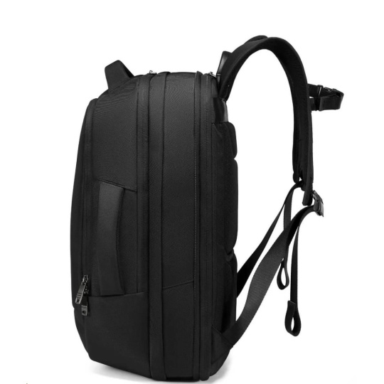 MYBALO ASTON Perfektní volba pro minimalisty s dobrým vkusem  6 ikon: - Nejtenčí batoh - Elegantní - Kapsa na notebook do 15,6" - Kapsa na tablet do 9" - Otevírání o 180 stupňů - USB a USB-C port - Drží tvar - Voděodolný - Skryté kapsy  Elegantní a minimalistický Jedná se o velmi elegantní a minimalistický batoh. S tímto parťákem neuděláte chybu při běžném nošení do města, ani na důležité schůzce.  Tenký batoh MYBALO Aston je batoh s vůbec nejmenší hloubkou z naší nabídky. Díky tomu působí elegantně a minimalisticky, ale i přesto se do něj vejdou všechny vaše nezbytnosti.  Kvalitní voděodolný materiál, dlouhá životnost Kvalitní umělá kůže zajišťuje trvanlivost a odolnost batohu proti vodě a opotřebení. MYBALO Aston tak bude vaším společníkem opravdu dlouho.  Drží tvar Batoh si zachovává svůj tvar také v případě, že jej budete mít úplně prázdný.  Vestavěný USB a USB-C port Nabíjejte svá elektronická zařízení kdekoli a kdykoli díky vestavěnému USB a USB-C portu.  Popruh k uchycení na kufr Cestujte pohodlně. Kdykoli chcete mít volná záda, jednoduše připevněte batoh na rukojeť svého kufru.  Pohodlné polstrování Užijte si komfortní nošení díky kvalitnímu a prodyšnému polstrování ramenních popruhů a zádové části.  Další praktické kapsy Zorganizujte si pohodlně a snadno své věci díky množství vychytaných kapes.  Skryté kapsy V zádové části a na ramenním popruhu najdete skryté kapsy pro bezpečné uložení cenností.  Vnitřní kapsy Vnitřní kapsy slouží pro snadnou organizaci všech vašich věcí.  Přední kapsa Přední kapsa je určena pro věci, které chcete mít rychle a snadno po ruce.  Parametry: - Rozměry: 46 x 30 x 9 cm - Objem: 11 l - Hmotnost: 1,19 kg - Kapsa na notebook: Ano (do vel. 15,6") - Kapsa na tablet: Ano (do vel. 9") - USB port: Ano - Voděodolnost: Ano - Hlavní materiál: Ekokůže + Polyester - Podšívka: Polyester - Barva: Černá