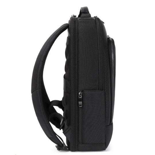 MYBALO ASTON Perfektní volba pro minimalisty s dobrým vkusem  6 ikon: - Nejtenčí batoh - Elegantní - Kapsa na notebook do 15,6" - Kapsa na tablet do 9" - Otevírání o 180 stupňů - USB a USB-C port - Drží tvar - Voděodolný - Skryté kapsy  Elegantní a minimalistický Jedná se o velmi elegantní a minimalistický batoh. S tímto parťákem neuděláte chybu při běžném nošení do města, ani na důležité schůzce.  Tenký batoh MYBALO Aston je batoh s vůbec nejmenší hloubkou z naší nabídky. Díky tomu působí elegantně a minimalisticky, ale i přesto se do něj vejdou všechny vaše nezbytnosti.  Kvalitní voděodolný materiál, dlouhá životnost Kvalitní umělá kůže zajišťuje trvanlivost a odolnost batohu proti vodě a opotřebení. MYBALO Aston tak bude vaším společníkem opravdu dlouho.  Drží tvar Batoh si zachovává svůj tvar také v případě, že jej budete mít úplně prázdný.  Vestavěný USB a USB-C port Nabíjejte svá elektronická zařízení kdekoli a kdykoli díky vestavěnému USB a USB-C portu.  Popruh k uchycení na kufr Cestujte pohodlně. Kdykoli chcete mít volná záda, jednoduše připevněte batoh na rukojeť svého kufru.  Pohodlné polstrování Užijte si komfortní nošení díky kvalitnímu a prodyšnému polstrování ramenních popruhů a zádové části.  Další praktické kapsy Zorganizujte si pohodlně a snadno své věci díky množství vychytaných kapes.  Skryté kapsy V zádové části a na ramenním popruhu najdete skryté kapsy pro bezpečné uložení cenností.  Vnitřní kapsy Vnitřní kapsy slouží pro snadnou organizaci všech vašich věcí.  Přední kapsa Přední kapsa je určena pro věci, které chcete mít rychle a snadno po ruce.  Parametry: - Rozměry: 46 x 30 x 9 cm - Objem: 11 l - Hmotnost: 1,19 kg - Kapsa na notebook: Ano (do vel. 15,6") - Kapsa na tablet: Ano (do vel. 9") - USB port: Ano - Voděodolnost: Ano - Hlavní materiál: Ekokůže + Polyester - Podšívka: Polyester - Barva: Černá
