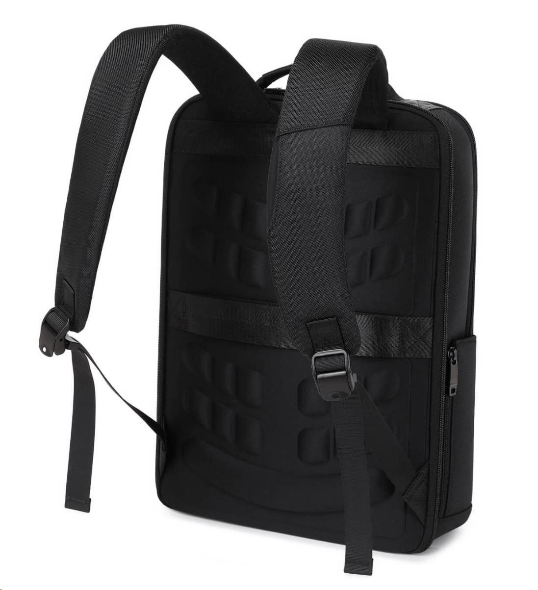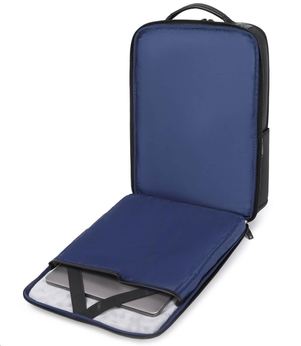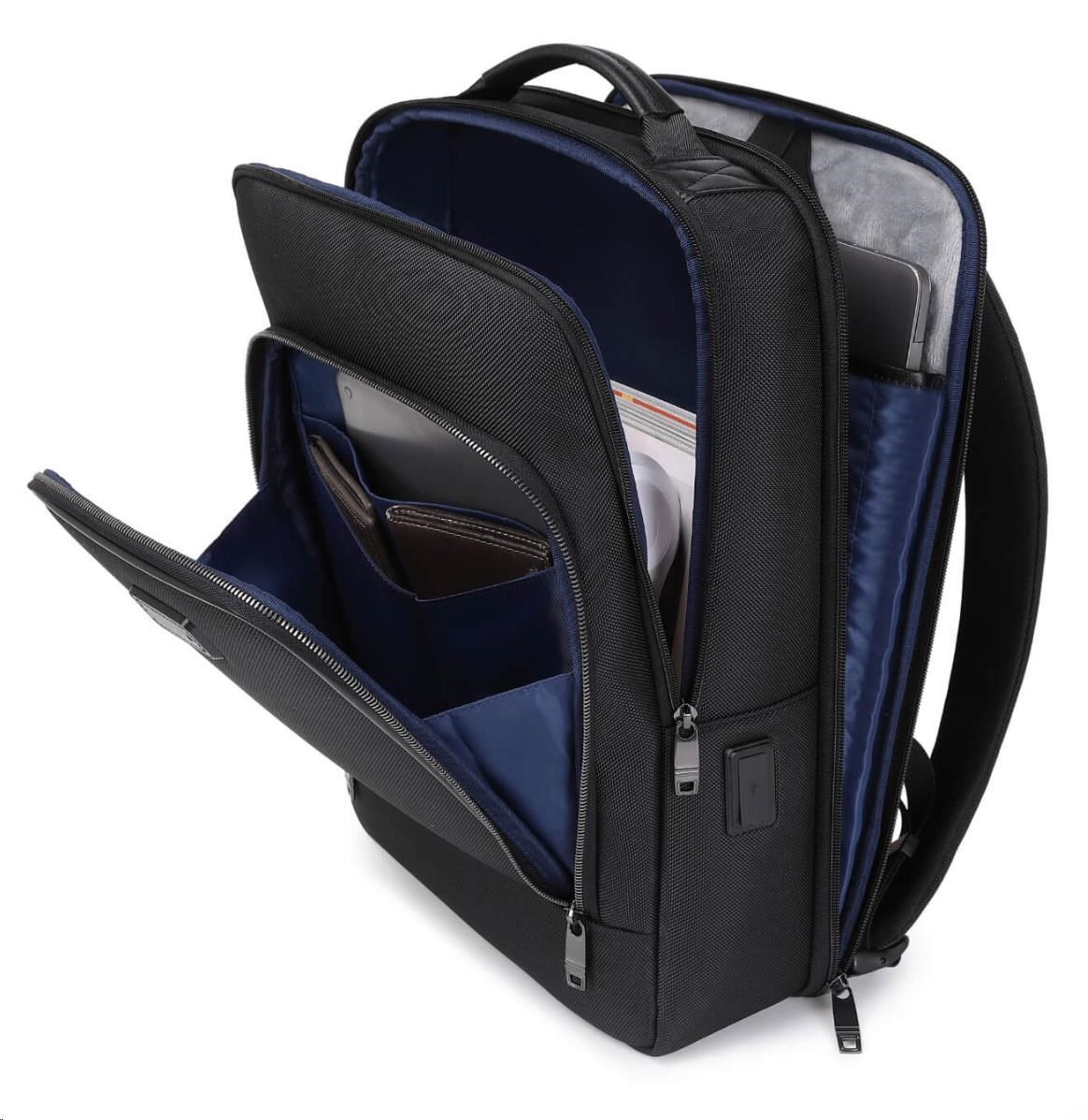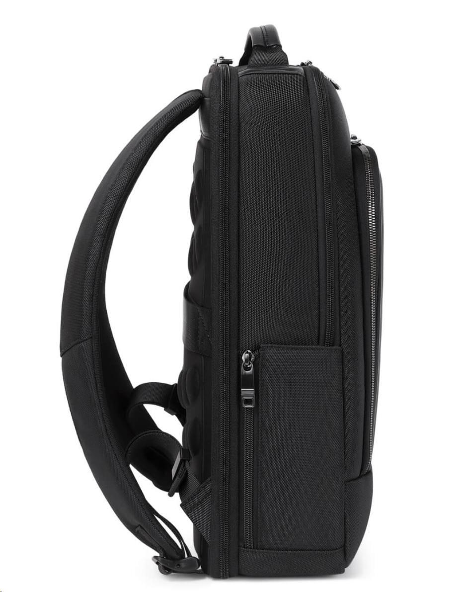 MYBALO ASTON Perfektní volba pro minimalisty s dobrým vkusem  6 ikon: - Nejtenčí batoh - Elegantní - Kapsa na notebook do 15,6" - Kapsa na tablet do 9" - Otevírání o 180 stupňů - USB a USB-C port - Drží tvar - Voděodolný - Skryté kapsy  Elegantní a minimalistický Jedná se o velmi elegantní a minimalistický batoh. S tímto parťákem neuděláte chybu při běžném nošení do města, ani na důležité schůzce.  Tenký batoh MYBALO Aston je batoh s vůbec nejmenší hloubkou z naší nabídky. Díky tomu působí elegantně a minimalisticky, ale i přesto se do něj vejdou všechny vaše nezbytnosti.  Kvalitní voděodolný materiál, dlouhá životnost Kvalitní umělá kůže zajišťuje trvanlivost a odolnost batohu proti vodě a opotřebení. MYBALO Aston tak bude vaším společníkem opravdu dlouho.  Drží tvar Batoh si zachovává svůj tvar také v případě, že jej budete mít úplně prázdný.  Vestavěný USB a USB-C port Nabíjejte svá elektronická zařízení kdekoli a kdykoli díky vestavěnému USB a USB-C portu.  Popruh k uchycení na kufr Cestujte pohodlně. Kdykoli chcete mít volná záda, jednoduše připevněte batoh na rukojeť svého kufru.  Pohodlné polstrování Užijte si komfortní nošení díky kvalitnímu a prodyšnému polstrování ramenních popruhů a zádové části.  Další praktické kapsy Zorganizujte si pohodlně a snadno své věci díky množství vychytaných kapes.  Skryté kapsy V zádové části a na ramenním popruhu najdete skryté kapsy pro bezpečné uložení cenností.  Vnitřní kapsy Vnitřní kapsy slouží pro snadnou organizaci všech vašich věcí.  Přední kapsa Přední kapsa je určena pro věci, které chcete mít rychle a snadno po ruce.  Parametry: - Rozměry: 46 x 30 x 9 cm - Objem: 11 l - Hmotnost: 1,19 kg - Kapsa na notebook: Ano (do vel. 15,6") - Kapsa na tablet: Ano (do vel. 9") - USB port: Ano - Voděodolnost: Ano - Hlavní materiál: Ekokůže + Polyester - Podšívka: Polyester - Barva: Černá