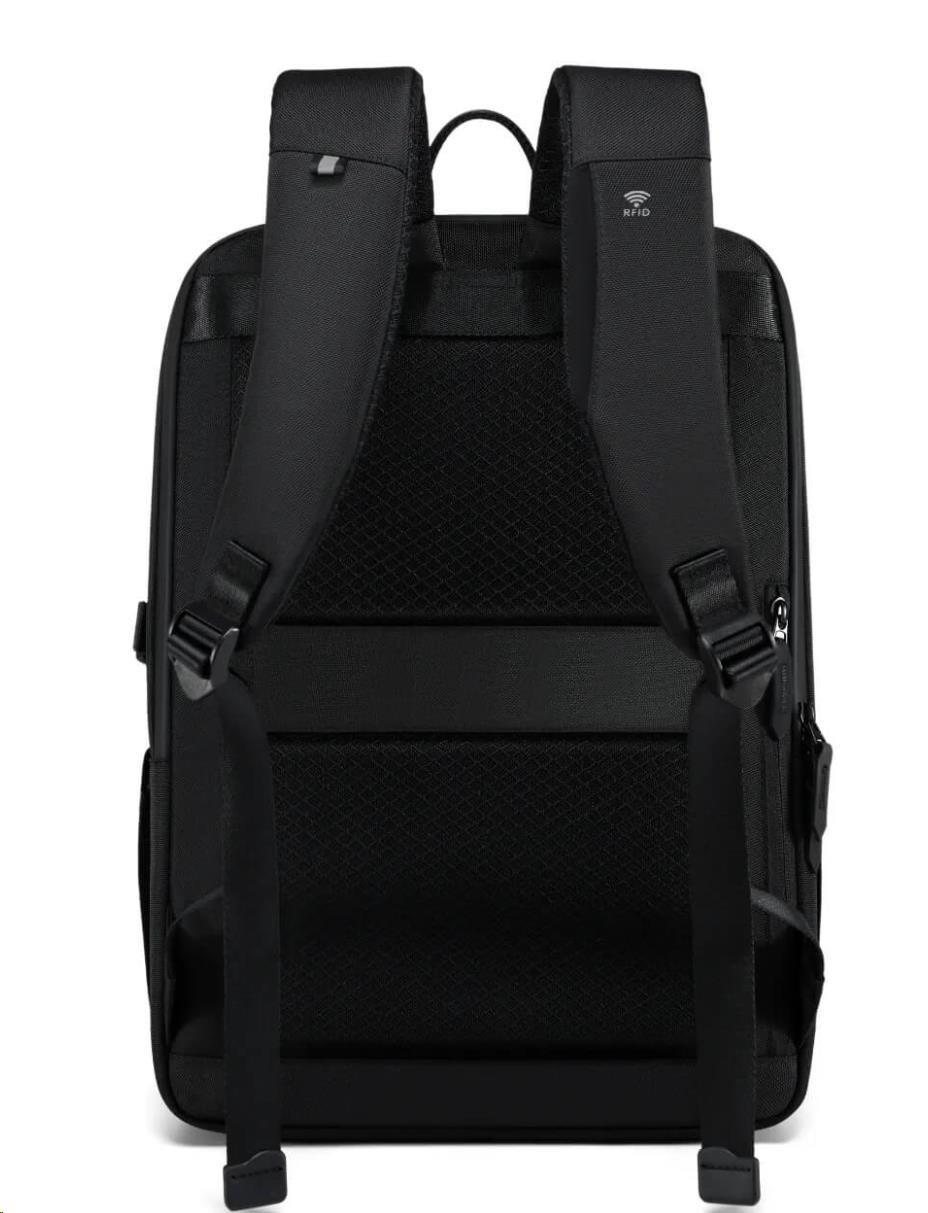 MYBALO ASTON Perfektní volba pro minimalisty s dobrým vkusem 6 ikon: - Nejtenčí batoh - Elegantní - Kapsa na notebook do 15,6" - Kapsa na tablet do 9" - Otevírání o 180 stupňů - USB a USB-C port - Drží tvar - Voděodolný - Skryté kapsy Elegantní a minimalistický Jedná se o velmi elegantní a minimalistický batoh. S tímto parťákem neuděláte chybu při běžném nošení do města, ani na důležité schůzce. Tenký batoh MYBALO Aston je batoh s vůbec nejmenší hloubkou z naší nabídky. Díky tomu působí elegantně a minimalisticky, ale i přesto se do něj vejdou všechny vaše nezbytnosti. Kvalitní voděodolný materiál, dlouhá životnost Kvalitní umělá kůže zajišťuje trvanlivost a odolnost batohu proti vodě a opotřebení. MYBALO Aston tak bude vaším společníkem opravdu dlouho. Drží tvar Batoh si zachovává svůj tvar také v případě, že jej budete mít úplně prázdný. Vestavěný USB a USB-C port Nabíjejte svá elektronická zařízení kdekoli a kdykoli díky vestavěnému USB a USB-C portu. Popruh k uchycení na kufr Cestujte pohodlně. Kdykoli chcete mít volná záda, jednoduše připevněte batoh na rukojeť svého kufru. Pohodlné polstrování Užijte si komfortní nošení díky kvalitnímu a prodyšnému polstrování ramenních popruhů a zádové části. Další praktické kapsy Zorganizujte si pohodlně a snadno své věci díky množství vychytaných kapes. Skryté kapsy V zádové části a na ramenním popruhu najdete skryté kapsy pro bezpečné uložení cenností. Vnitřní kapsy Vnitřní kapsy slouží pro snadnou organizaci všech vašich věcí. Přední kapsa Přední kapsa je určena pro věci, které chcete mít rychle a snadno po ruce. Parametry: - Rozměry: 46 x 30 x 9 cm - Objem: 11 l - Hmotnost: 1,19 kg - Kapsa na notebook: Ano (do vel. 15,6") - Kapsa na tablet: Ano (do vel. 9") - USB port: Ano - Voděodolnost: Ano - Hlavní materiál: Ekokůže + Polyester - Podšívka: Polyester - Barva: Černá