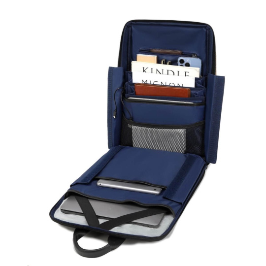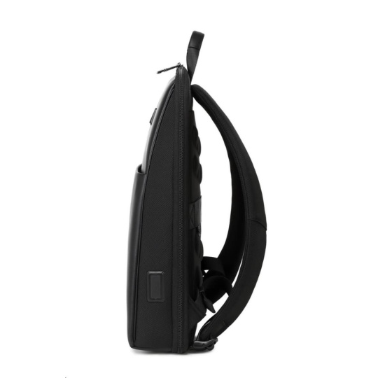 MYBALO ASTON Perfektní volba pro minimalisty s dobrým vkusem  6 ikon: - Nejtenčí batoh - Elegantní - Kapsa na notebook do 15,6" - Kapsa na tablet do 9" - Otevírání o 180 stupňů - USB a USB-C port - Drží tvar - Voděodolný - Skryté kapsy  Elegantní a minimalistický Jedná se o velmi elegantní a minimalistický batoh. S tímto parťákem neuděláte chybu při běžném nošení do města, ani na důležité schůzce.  Tenký batoh MYBALO Aston je batoh s vůbec nejmenší hloubkou z naší nabídky. Díky tomu působí elegantně a minimalisticky, ale i přesto se do něj vejdou všechny vaše nezbytnosti.  Kvalitní voděodolný materiál, dlouhá životnost Kvalitní umělá kůže zajišťuje trvanlivost a odolnost batohu proti vodě a opotřebení. MYBALO Aston tak bude vaším společníkem opravdu dlouho.  Drží tvar Batoh si zachovává svůj tvar také v případě, že jej budete mít úplně prázdný.  Vestavěný USB a USB-C port Nabíjejte svá elektronická zařízení kdekoli a kdykoli díky vestavěnému USB a USB-C portu.  Popruh k uchycení na kufr Cestujte pohodlně. Kdykoli chcete mít volná záda, jednoduše připevněte batoh na rukojeť svého kufru.  Pohodlné polstrování Užijte si komfortní nošení díky kvalitnímu a prodyšnému polstrování ramenních popruhů a zádové části.  Další praktické kapsy Zorganizujte si pohodlně a snadno své věci díky množství vychytaných kapes.  Skryté kapsy V zádové části a na ramenním popruhu najdete skryté kapsy pro bezpečné uložení cenností.  Vnitřní kapsy Vnitřní kapsy slouží pro snadnou organizaci všech vašich věcí.  Přední kapsa Přední kapsa je určena pro věci, které chcete mít rychle a snadno po ruce.  Parametry: - Rozměry: 46 x 30 x 9 cm - Objem: 11 l - Hmotnost: 1,19 kg - Kapsa na notebook: Ano (do vel. 15,6") - Kapsa na tablet: Ano (do vel. 9") - USB port: Ano - Voděodolnost: Ano - Hlavní materiál: Ekokůže + Polyester - Podšívka: Polyester - Barva: Černá
