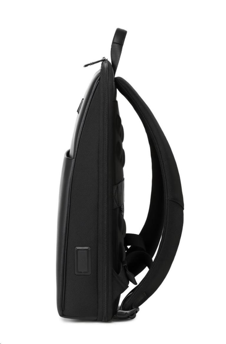 MYBALO ASTON Perfektní volba pro minimalisty s dobrým vkusem 6 ikon: - Nejtenčí batoh - Elegantní - Kapsa na notebook do 15,6" - Kapsa na tablet do 9" - Otevírání o 180 stupňů - USB a USB-C port - Drží tvar - Voděodolný - Skryté kapsy Elegantní a minimalistický Jedná se o velmi elegantní a minimalistický batoh. S tímto parťákem neuděláte chybu při běžném nošení do města, ani na důležité schůzce. Tenký batoh MYBALO Aston je batoh s vůbec nejmenší hloubkou z naší nabídky. Díky tomu působí elegantně a minimalisticky, ale i přesto se do něj vejdou všechny vaše nezbytnosti. Kvalitní voděodolný materiál, dlouhá životnost Kvalitní umělá kůže zajišťuje trvanlivost a odolnost batohu proti vodě a opotřebení. MYBALO Aston tak bude vaším společníkem opravdu dlouho. Drží tvar Batoh si zachovává svůj tvar také v případě, že jej budete mít úplně prázdný. Vestavěný USB a USB-C port Nabíjejte svá elektronická zařízení kdekoli a kdykoli díky vestavěnému USB a USB-C portu. Popruh k uchycení na kufr Cestujte pohodlně. Kdykoli chcete mít volná záda, jednoduše připevněte batoh na rukojeť svého kufru. Pohodlné polstrování Užijte si komfortní nošení díky kvalitnímu a prodyšnému polstrování ramenních popruhů a zádové části. Další praktické kapsy Zorganizujte si pohodlně a snadno své věci díky množství vychytaných kapes. Skryté kapsy V zádové části a na ramenním popruhu najdete skryté kapsy pro bezpečné uložení cenností. Vnitřní kapsy Vnitřní kapsy slouží pro snadnou organizaci všech vašich věcí. Přední kapsa Přední kapsa je určena pro věci, které chcete mít rychle a snadno po ruce. Parametry: - Rozměry: 46 x 30 x 9 cm - Objem: 11 l - Hmotnost: 1,19 kg - Kapsa na notebook: Ano (do vel. 15,6") - Kapsa na tablet: Ano (do vel. 9") - USB port: Ano - Voděodolnost: Ano - Hlavní materiál: Ekokůže + Polyester - Podšívka: Polyester - Barva: Černá.