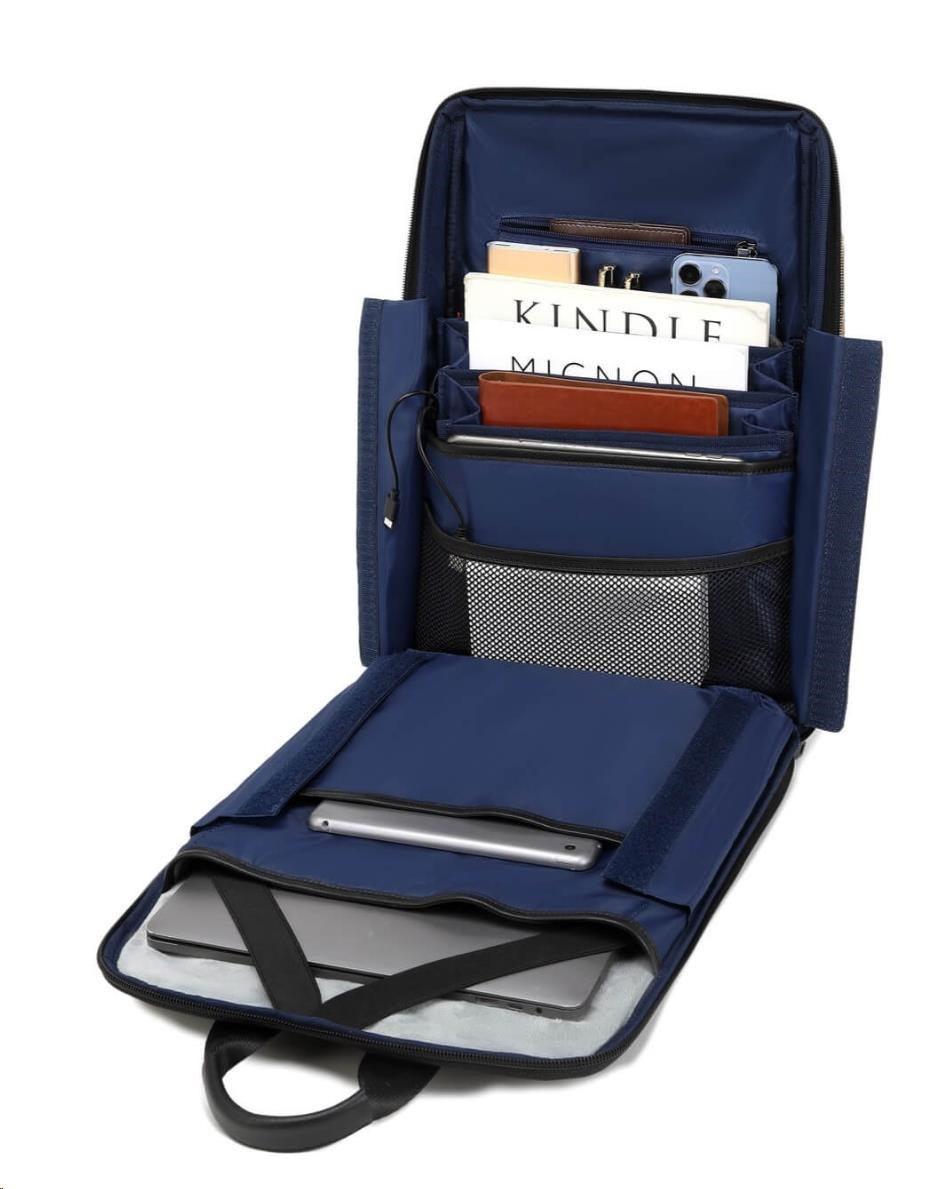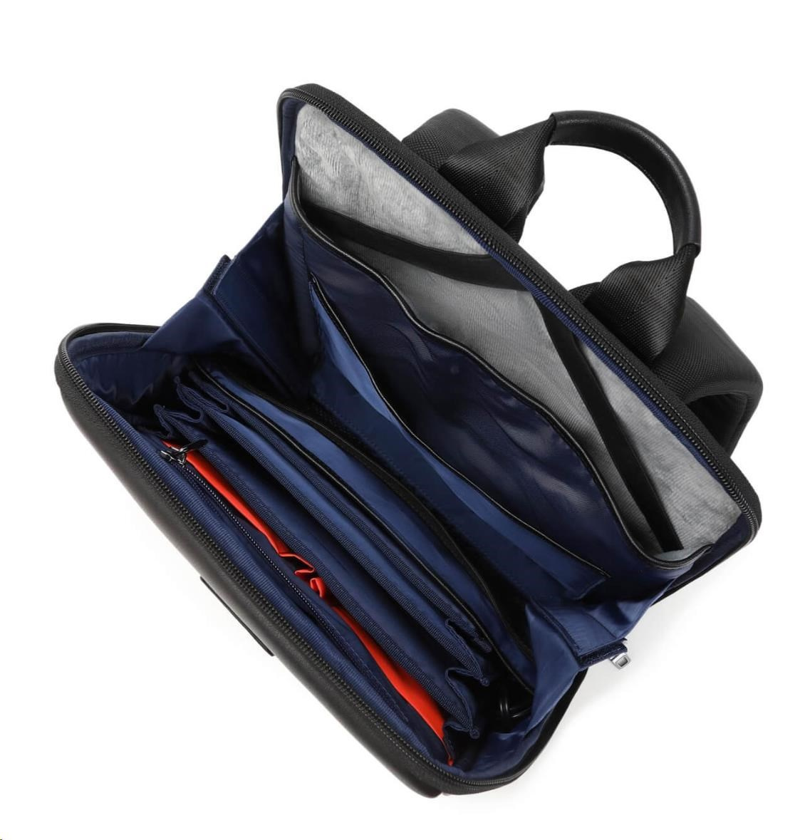 MYBALO ASTON Perfektní volba pro minimalisty s dobrým vkusem 6 ikon: - Nejtenčí batoh - Elegantní - Kapsa na notebook do 15,6" - Kapsa na tablet do 9" - Otevírání o 180 stupňů - USB a USB-C port - Drží tvar - Voděodolný - Skryté kapsy Elegantní a minimalistický Jedná se o velmi elegantní a minimalistický batoh. S tímto parťákem neuděláte chybu při běžném nošení do města, ani na důležité schůzce. Tenký batoh MYBALO Aston je batoh s vůbec nejmenší hloubkou z naší nabídky. Díky tomu působí elegantně a minimalisticky, ale i přesto se do něj vejdou všechny vaše nezbytnosti. Kvalitní voděodolný materiál, dlouhá životnost Kvalitní umělá kůže zajišťuje trvanlivost a odolnost batohu proti vodě a opotřebení. MYBALO Aston tak bude vaším společníkem opravdu dlouho. Drží tvar Batoh si zachovává svůj tvar také v případě, že jej budete mít úplně prázdný. Vestavěný USB a USB-C port Nabíjejte svá elektronická zařízení kdekoli a kdykoli díky vestavěnému USB a USB-C portu. Popruh k uchycení na kufr Cestujte pohodlně. Kdykoli chcete mít volná záda, jednoduše připevněte batoh na rukojeť svého kufru. Pohodlné polstrování Užijte si komfortní nošení díky kvalitnímu a prodyšnému polstrování ramenních popruhů a zádové části. Další praktické kapsy Zorganizujte si pohodlně a snadno své věci díky množství vychytaných kapes. Skryté kapsy V zádové části a na ramenním popruhu najdete skryté kapsy pro bezpečné uložení cenností. Vnitřní kapsy Vnitřní kapsy slouží pro snadnou organizaci všech vašich věcí. Přední kapsa Přední kapsa je určena pro věci, které chcete mít rychle a snadno po ruce. Parametry: - Rozměry: 46 x 30 x 9 cm - Objem: 11 l - Hmotnost: 1,19 kg - Kapsa na notebook: Ano (do vel. 15,6") - Kapsa na tablet: Ano (do vel. 9") - USB port: Ano - Voděodolnost: Ano - Hlavní materiál: Ekokůže + Polyester - Podšívka: Polyester - Barva: Černá