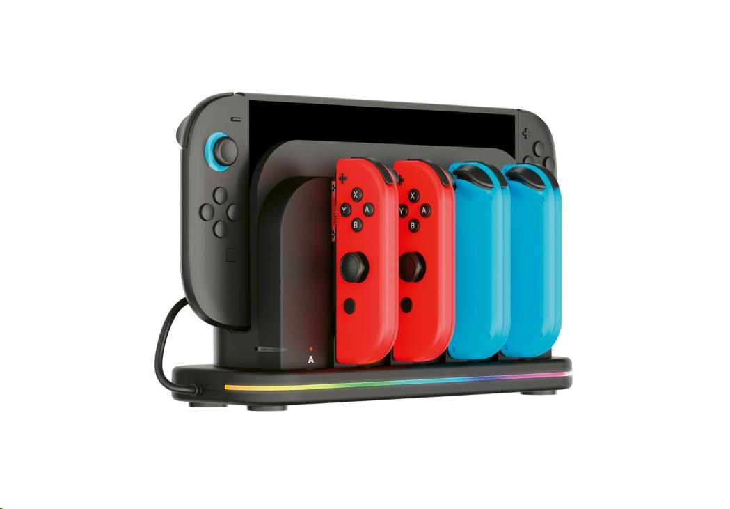 Táto nabíjacia dokovacia stanica od spoločnosti Nacon príde vhod všetkým majiteľom novej hernej konzoly Nintendo Switch 2 aj pôvodnej hernej konzoly Nintendo Switch, ktorí často potrebujú nabíjať väčší počet ovládačov Joy-Con. Stanica umožňuje nabíjať súčasne až štyri ovládače, ako aj samotnú konzolu, ktorej zabraňuje prehriatiu zabudovaný chladicí vetrák. O stave nabíjania každého z ovládačov informuje príslušný LED ukazovateľ, zatiaľ čo RGB pásik s výberom z deviatich rôznych efektov dodáva stanici štýlový, moderný vzhľad. Pretože napájací USB-C kábel nie je súčasťou balenia, slúži na pripojenie stanice do elektrickej siete originálne napájacie príslušenstvo dodávané s konzolou.