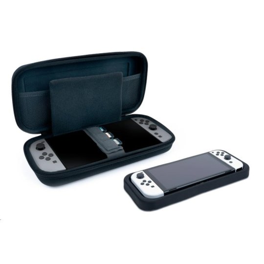 V tomto pevném prepravnom puzdre od spoločnosti Nacon môžete bezpečne a bez obáv prepravovať svoju hernú konzolu Nintendo Switch 2. Polstrovaný oddelovač uprostred puzdra sa postará o to, aby obrazovka konzoly neutrpela pri preprave ani škrabnutie, a na pásku na suchý zips držiacom konzolu na mieste nájdete navyše tri kapsičky na uloženie kariet s vašimi obľúbenými hrami. V sieťovanej kapsičke v hornej časti puzdra sa potom nachádza dostatok priestoru pre nevyhnutné príslušenstvo. Súčasťou puzdra je tiež vyberateľné medzidno pre konzolu Switch, Switch Lite a Switch – OLED Model.