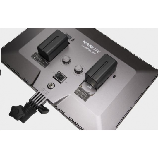 Nanlite LumiPad 25 je ideálny na vytváranie mäkkého, rovnomerne rozptýleného svetla v štúdiu aj v teréne. Môžete si vybrať z niekoľkých možností napájania vrátane napájacieho adaptéra alebo kompatibilných batérií Sony NP-F (predávajú sa samostatne). Panel má tiež integrovaný indikátor stavu batérie.