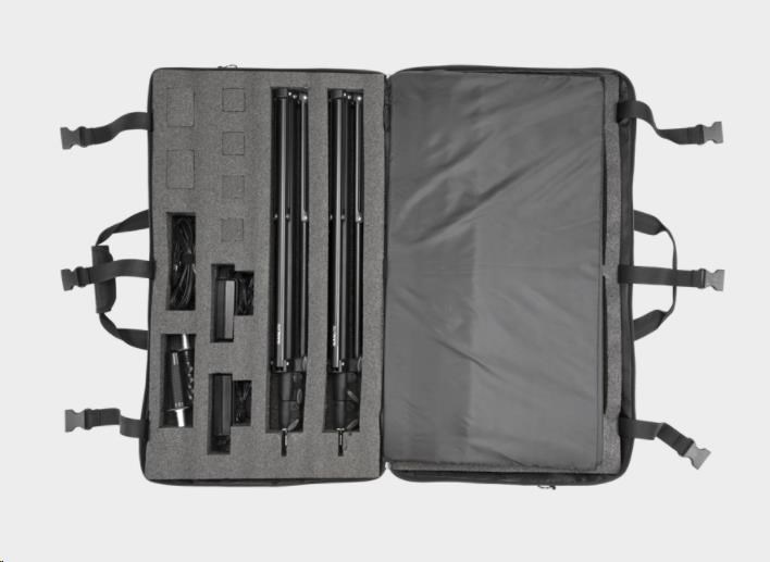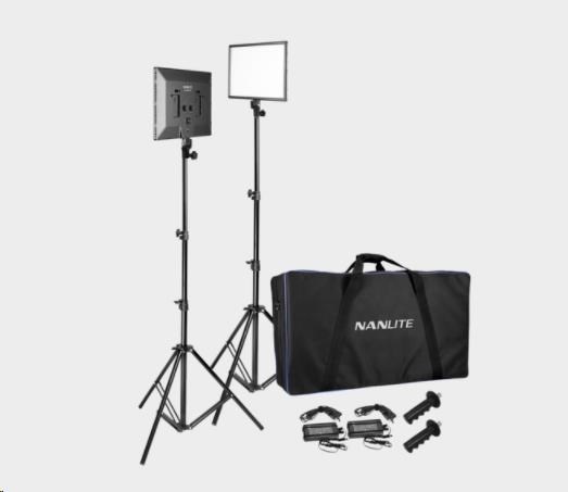 Sada 2 LED svetelných panelov Nanlite LumiPad 25. Sada obsahuje aj 2 statívy, 2 rukoväte a puzdro na prenášanie.